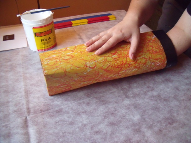 - Zawiń białą linię na pokrytą klejem część – dociśnij papier palcami do pokrytej klejem części